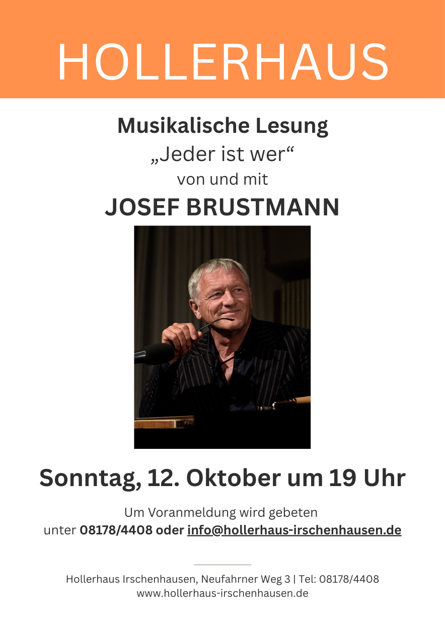 Im Rahmen der Ausstellung FREIHEIT DER FARBE von CHRISTINE KOLBINGER präsentiert das Hollerhaus JOSEF BRUSTMANN mit seinem Bestseller-Buch „Jeder ist wer“ sowie erste, höchst interessante Einblicke in sein neues literarisches […]